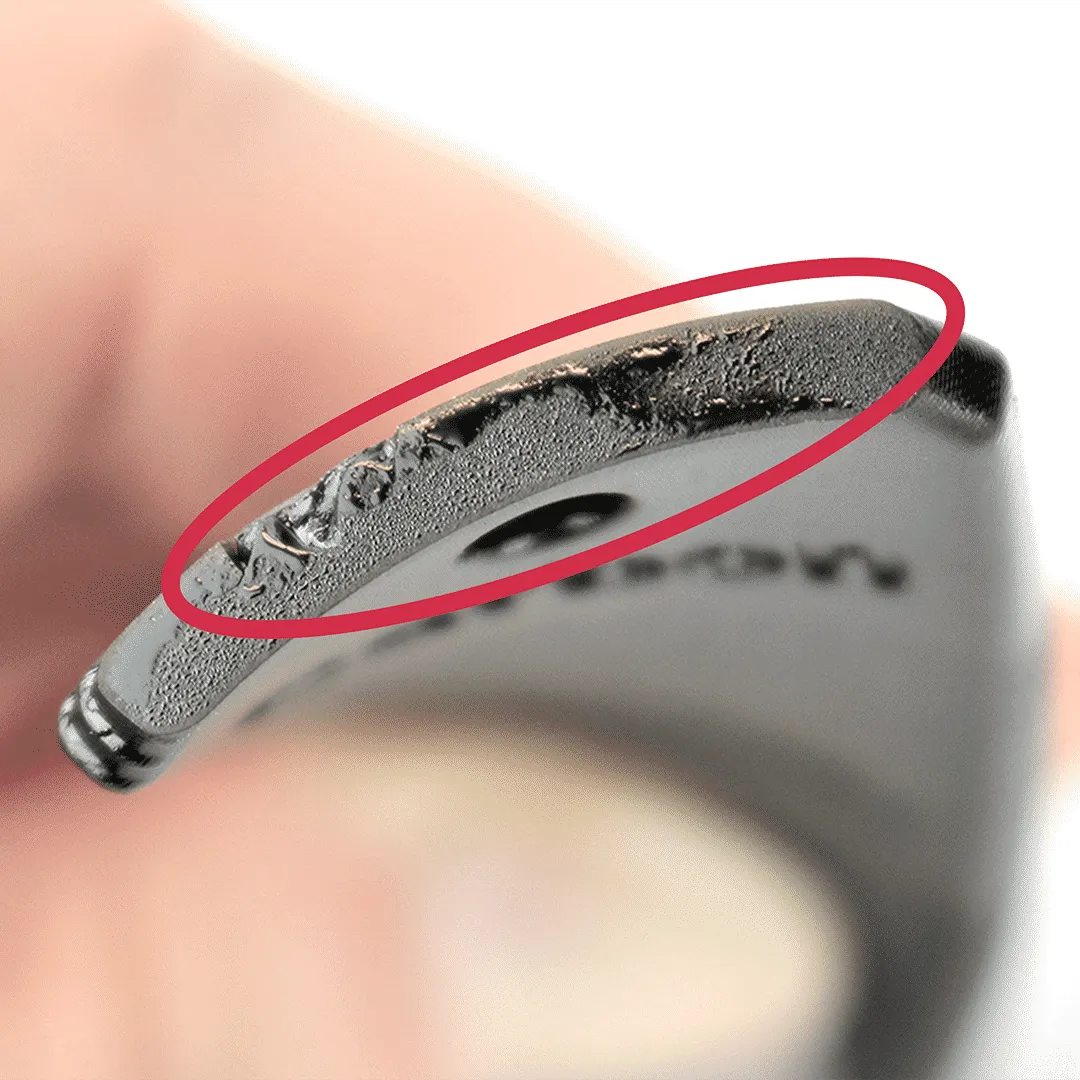 excess resin shiny patches on parts or clogged gaps how to identify excess resin can be diagnosed as follows shiny or glossy patches inconsistent surface sheen clogged gaps in a lattice this defect is related to the docid\ rbf4ep 02b6octr9yppbz defect, which stems from the same issue but manifests differently cause inconclusive cause inconclusive cause inconclusive cause inconclusive cause inconclusive cause inconclusive cause inconclusive cause inconclusive cause inconclusive troubleshooting it is recommended that you review all the possible solutions before taking action to ensure you are pursuing the best course of action if the best course of action is not apparent, try the troubleshooting options in the order listed refer docid\ ppm8gmegcy 0fkfwgtcyj for more tips process, material, and hardware checks if any of these conditions apply to your print, take the corrective action and reprint to see if the problem is resolved washing touchup touch up parts with additional cleaning to remove resin (shiny areas) use lint free wipes use swabs use compressed air cabinet touch up methods reference docid\ avn2rnslshhmuz9rbykmn for more information washing solventless spinning adjust spin settings adjustments are listed in the recommended order to try increase spin speed +20% note there is a risk parts will peel off the platform or tear without adequate adhesion and lattice strength at higher spin speeds increase spin duration +33% note that solventless spinning is a production process for select l1 printed applications print preparation or part design adjustments the following solutions will address print or part related causes of the defects choose among the suggested actions below and select the best approach for your application usually only one type of adjustment is needed design redesign part add a fillet or chamfer to tight corners tight corners ≤ 90° provide drainage for blind holes and difficult to access features increase spacing between fine features redesign if problems persist, please reach out to mailto\ support\@carbon3d com explanation & causes explanation when parts are not fully cleaned, liquid resin remains on the part after washing and cures into the part features prone to collecting liquid resin and not getting fully cleaned blind holessmall openings with only one access point tight corners (acute angles ≤ 90°) tightly packed features difficult to access spaces areas that solvent cannot access easily small features and openings such as in a lattice blind hole example this example shows a blind hole without drainage without drainage and with a drain hole with a drain hole the blind hole with a drain hole at the base of the feature allows resin to wash out of the feature with solvent with a swab, you can see that the blind hole retains liquid resin after washing while the drained hole comes out clean blind hole example causes post processing how the part is handled in post processing is causing the defect post processing root issue problem why defect presents washing blind holes solvent cannot effectively reach part features when the surface tension of the liquid resin is stronger than the solvent's ability to flow through the feature corners tight corners ≤ 90° tightly packed features difficult to access spaces small features and openings print preparation or part design how the part is oriented , supported , or designed is causing the defect root issue problem why defect presents design blind holes tight spaces create areas where the surface tension of the liquid resin is stronger than the solvent's ability to flow through during washing tight corners ≤ 90° tightly packed features difficult to access spaces small features and openings small features and openings