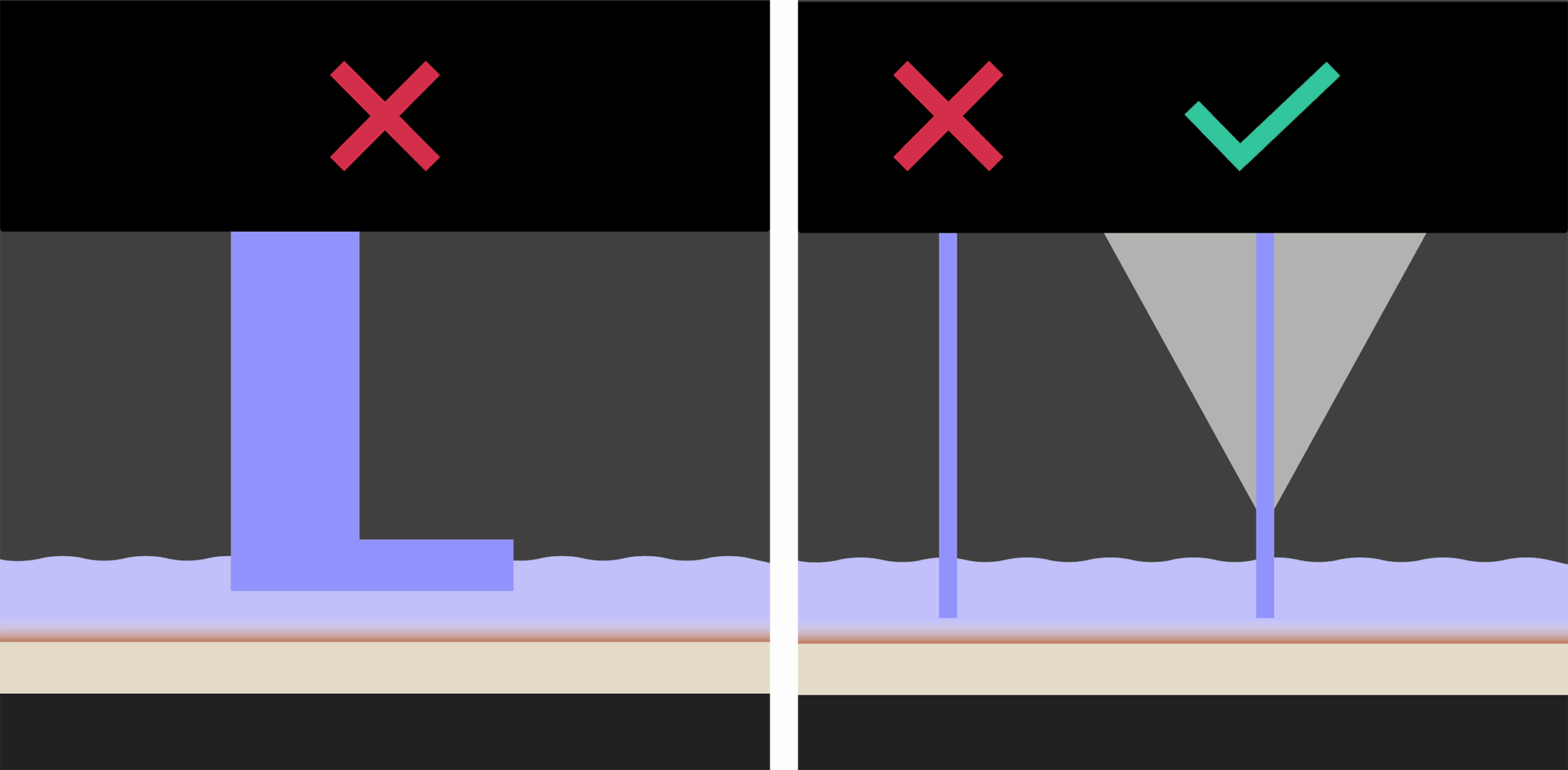 layering part surface is stretched out of position during printing how to identify layering can be diagnosed as follows on vertically oriented surfaces layering appears as lines that run horizontally, parallel to the platform the lines will appear sunken on both sides of the surface, ie the surface is thinner than it should be where the line occurs on horizontally oriented surfaces layering appears as a sunken area on the surface the surface will be thinner than it should be where the layering occurs docid vxgj8ytejzi4a1mg6awl arises from the same issue but appears on lattice struts instead of surfaces cause inconclusive vertical layering cause inconclusive vertical layering cause inconclusive vertical layering cause inconclusive horizontal layering troubleshooting it is recommended that you review all the possible solutions before taking action to ensure you are pursuing the best course of action if the best course of action is not apparent, try the troubleshooting options in the order listed refer docid\ ppm8gmegcy 0fkfwgtcyj for more tips print preparation or part design adjustments the following solutions will address print or part related causes of the defects choose among the suggested actions below and select the best approach for your application usually only one type of adjustment is needed supports add supports to vertical and horizontal surfaces supports design thicken or add structure to vertically oriented surfaces add structure to horizontal surfaces design print plan adjustments reference docid\ nxuk0dltz vemeau0dipn for guidance on the following parameters docid\ xp2lrjpj4njfl z8n58rl pump height parameters minimum pump height distance from peak multiplier minimum distance from peak platform speed parameters motor speed up docid\ xph5lzvy6zsquwvsv89t enhanced epu force feedback enabled if problems persist, please reach out to mailto\ support\@carbon3d com explanation & causes explanation layering is formed when a surface is unable to break free of the surface tension at the dead zone during the pump up stage of printing a slice this stretches the surface which presents differently based on how the surface is oriented this defect usually occurs with elastomeric resins that are soft and pliable during printing reference docid\ u7xyytjydp3bvsyy2qkcu for more information on the stages of printing a slice on vertically oriented surfaces the edge of a surface is held by the surface tension of the dead zone when the platform rises, the surface is stretched thin as the platform moves back down to the curing position, the surface is still stretched, which appears as a line in the surface vertical surface does not break surface tension at dead zone and stretches the next slice cures over the stretched surface and leaves a line on vertically oriented surfaces z dimensions for pump height and slice thickness are exaggerated for visibility on horizontally oriented surfaces a surface flat against the window does not break free of the dead zone's surface tension when the platform rises as the platform moves back down to the curing position, the surface is still in the curing zone and overlaps with the next slice this appears as a sunken area in the surface portion of surface does not break surface tension at dead zone and resin does not flow below for next slice the next slice only cures where resin was able to flow the next slice proceeds normally but a sunken area has been left on the surface on horizontally oriented surfaces z dimensions for pump height and slice thickness are exaggerated for visibility causes print preparation or part design how the part is oriented , supported , or designed is causing the defect print preparation or part design cause root issue problem why defect presents supports under supported supports provide additional structure which makes it easier for surfaces to break free of the dead zone's surface tension design thin surfaces thin surface are more prone to stretching during the pump up stage print plan adjustments print plan adjustments docid\ nxuk0dltz vemeau0dipn adjust the print plan to optimize mid to high volume production and/or address part defects in doing so, adjustment may both prevent or cause defects below are adjustments that can cause this defect printing stage parameter type type of adjustment why defect presents 1 pump up pump height decrease decrease a decrease in pump height makes it more difficult for the part to break free from the dead zone surface tension 4 settle down delay timing decrease decrease when the part does not break free of the dead zone surface tension, resin flow is restricted a longer settle down delay is needed to compensate for this